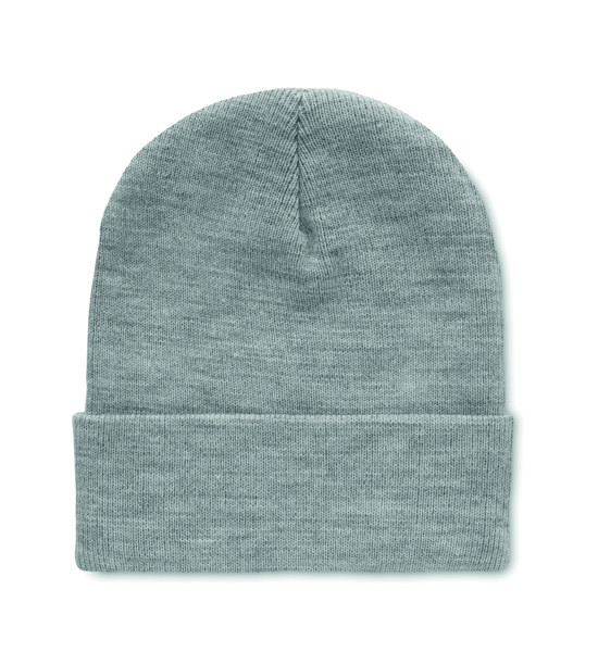 Gestrickte Beanie aus softem, elastischem RPET Polyester. Mit Umschlag. Unisex.
