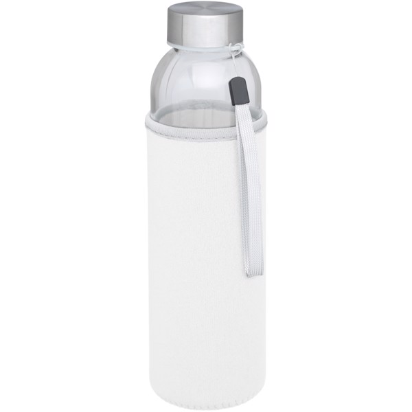 Einwandige Glasflasche mit Schraubdeckel. Der Deckel verfügt über einen Gurt zum einfachen Tragen sowie eine Neoprenhülle. Empfohlen für kalte Getränke. Nicht einfrieren, nicht Mikrowellengeeignet. Das Fassungsvermögen beträgt 500 ml. Verpackt in einer Geschenkschachtel.