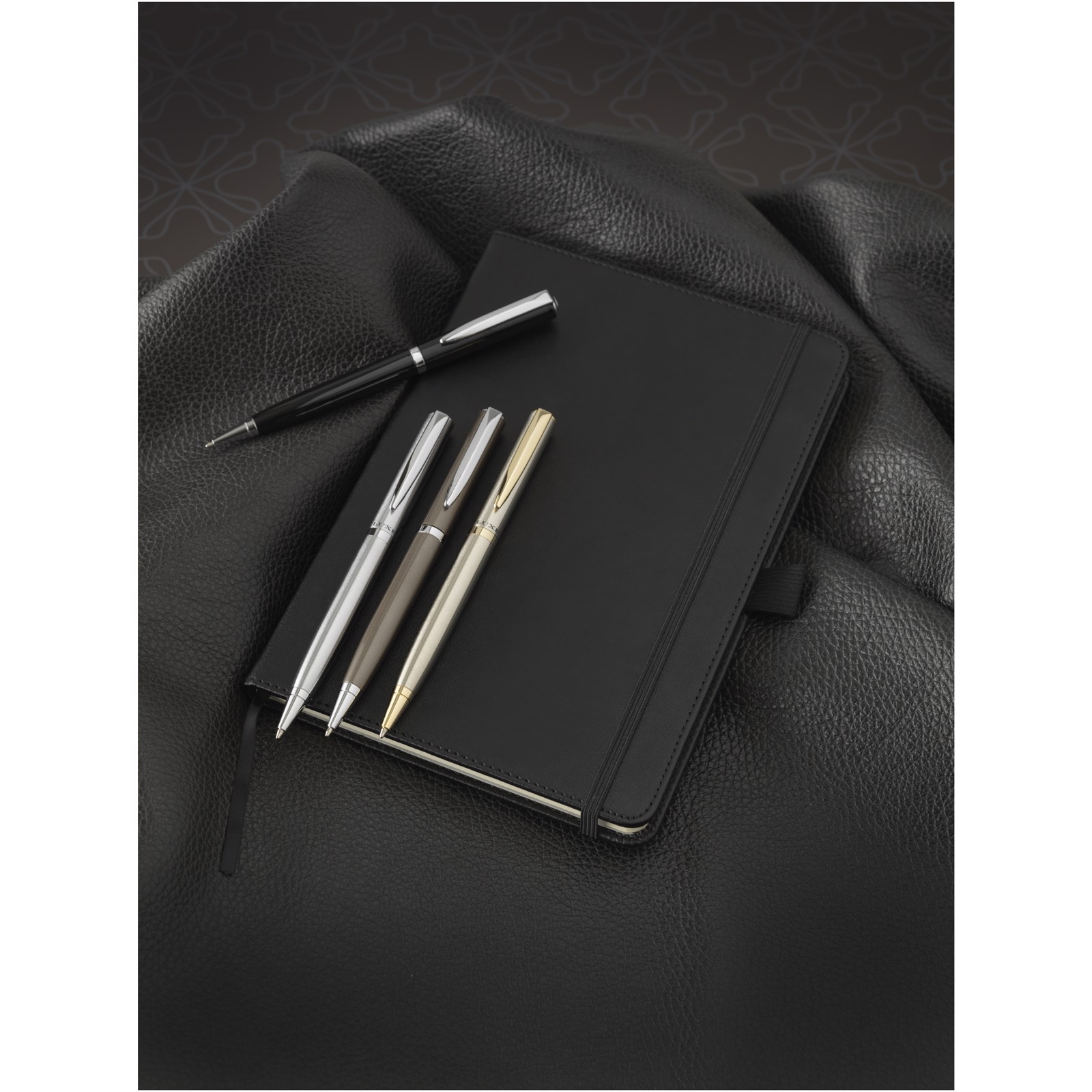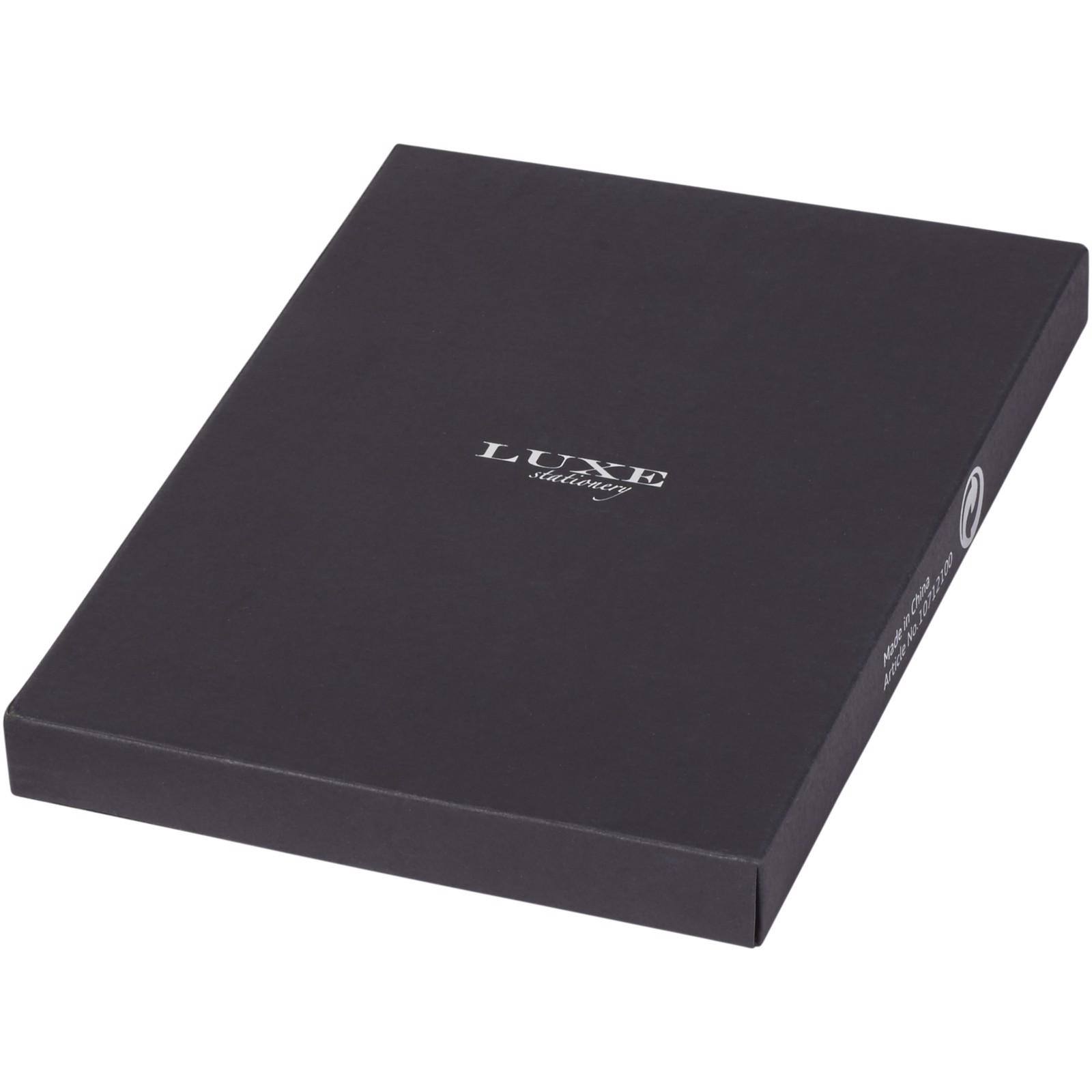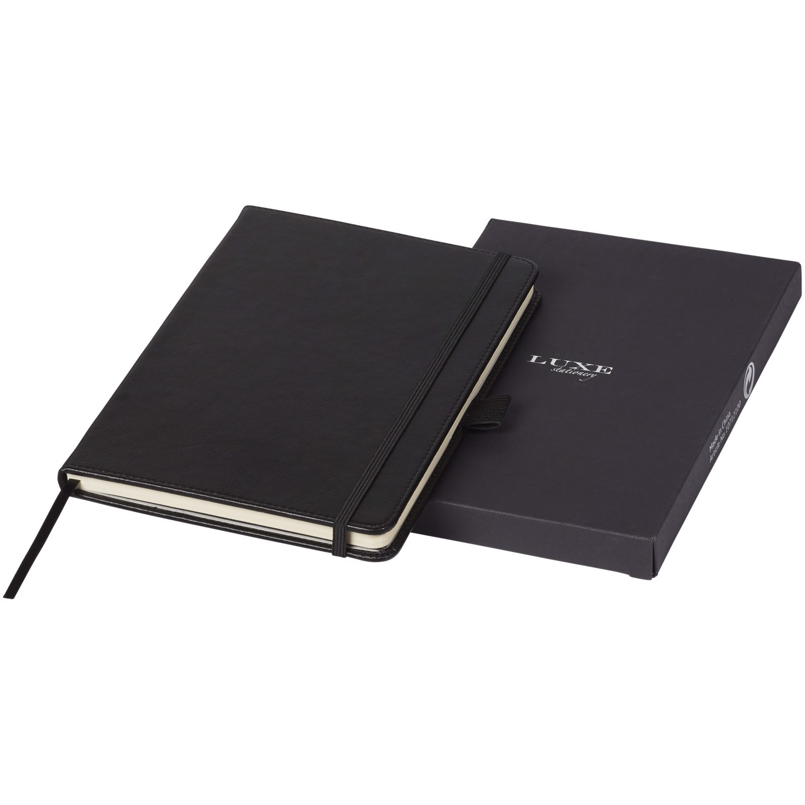 Notizbuch (Größe A5) in exklusivem Design, mit 80 g/m², 80 Blatt liniertes cremefarbenes Papier mit Innentasche hinten und Stiftschlaufe. Verpackt in einer Geschenkbox von LUXE.
