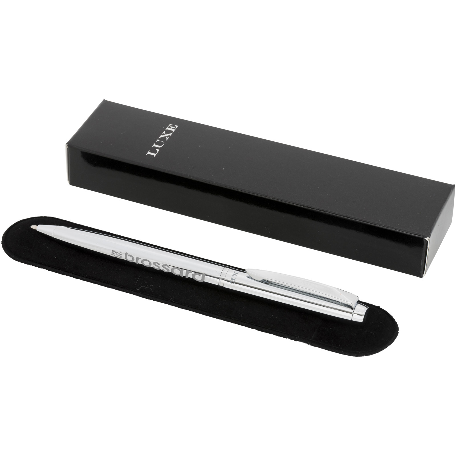 Kugelschreiber mit exklusivem Design und glänzenden Chrom-Akzenten. Inklusive einer hochwertigen Mine in Schwarz und verpackt in einer „LUXE“ Geschenkschachtel (15 x 3,5 x 2 cm).