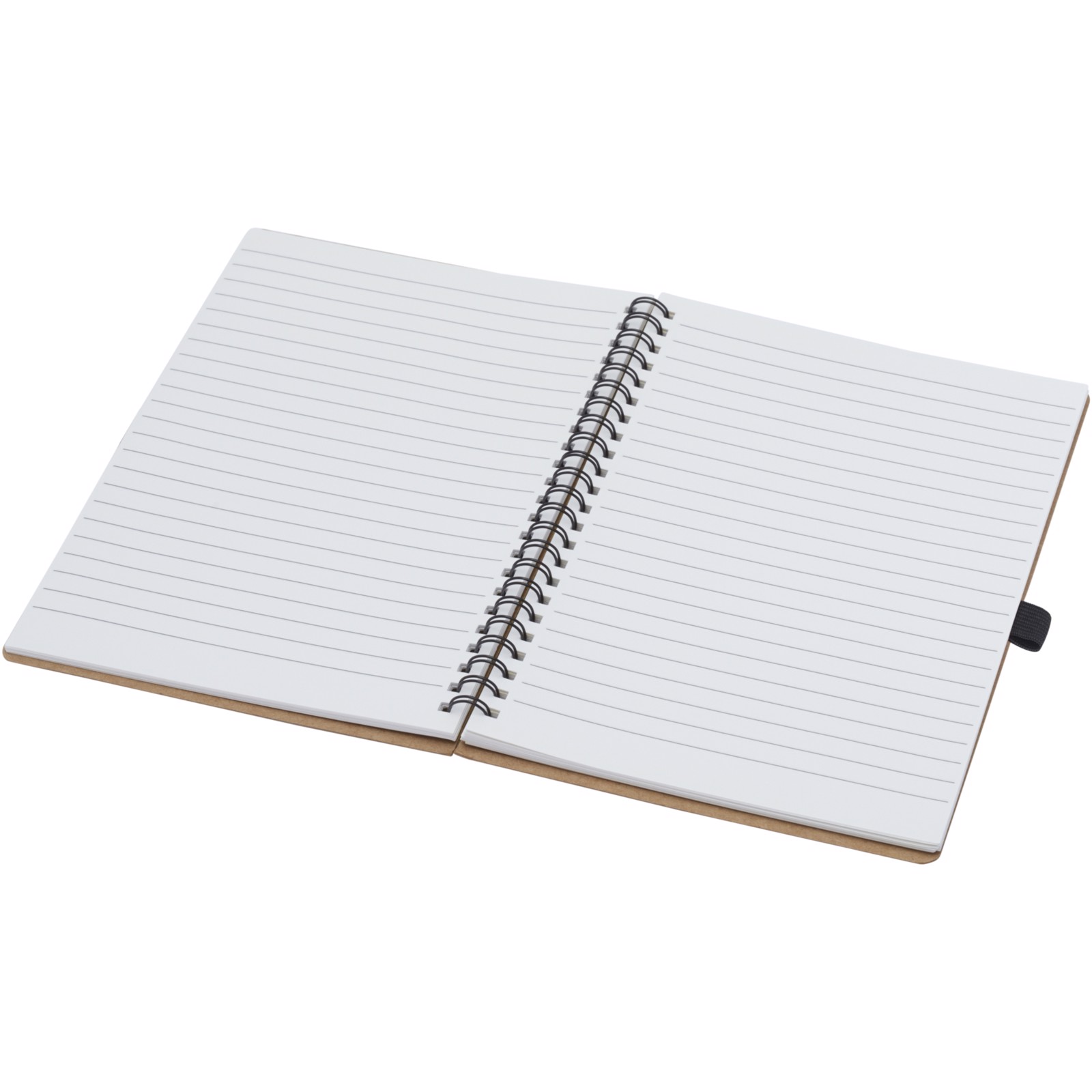 A5 Notizbuch mit Spiralbindung und einem Cover aus recyceltem Karton mit Stiftschlaufe. 70 Blatt, 60 g/m² linierte Inhaltsseiten aus Steinpapier Steinpapier ist 100 % holzfrei und der Produktionsprozess verbraucht weniger Energie als recyceltes oder neues Zellstoffpapier. Das Papier ist wasser- und reißfest und hat eine natürliche weiße Farbe (keine Bleichmittel eingesetzt).