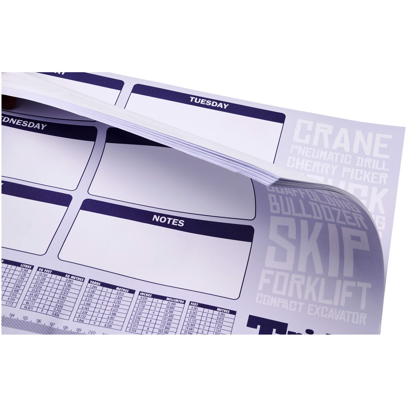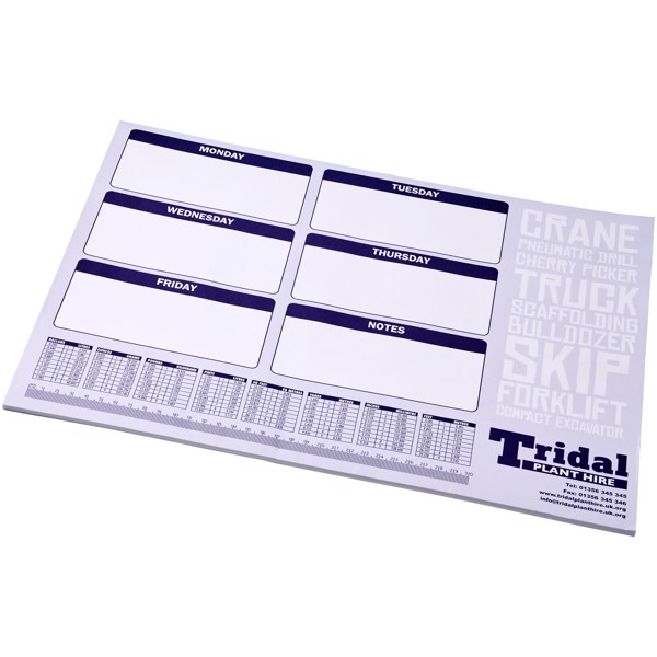 Weißer Desk-Mate® A2 Notizblock. Standardlieferung mit 50 Blatt 80g/m2-Papier. Vollfarbdruck auf jedem Blatt möglich. Erhältlich in den Varianten 25 Blatt (21200001), 50 Blatt (21200002) und 100 Blatt (21200004).