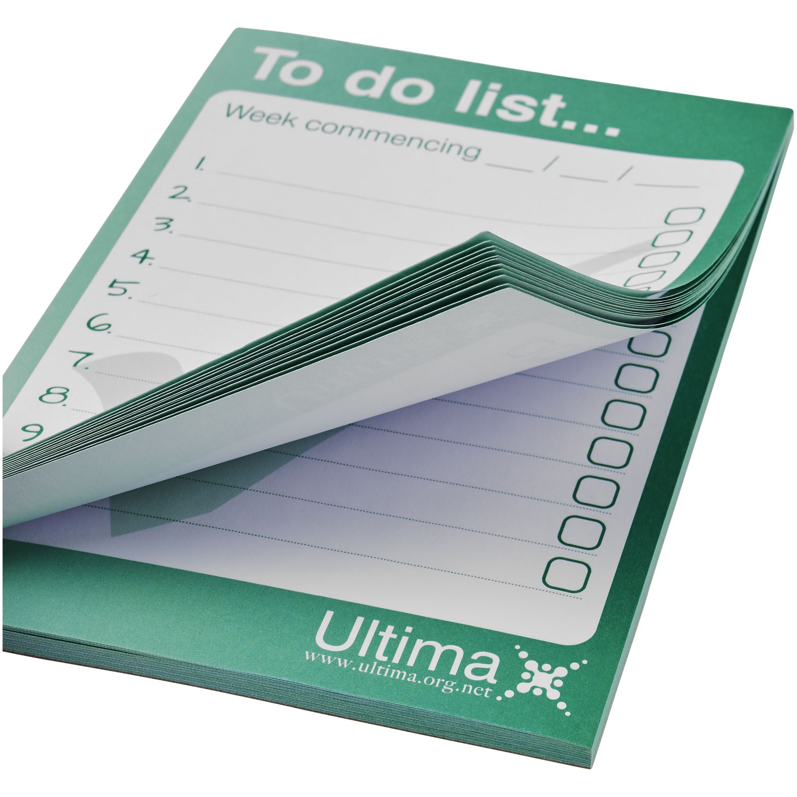 Weißer Desk-Mate® A6 Notizblock. Standardlieferung mit 50 Blatt 80g/m2-Papier. Vollfarbdruck auf jedem Blatt möglich. Erhältlich in den Varianten 25 Blatt (21204001), 50 Blatt (21204002) und 100 Blatt (21204004).