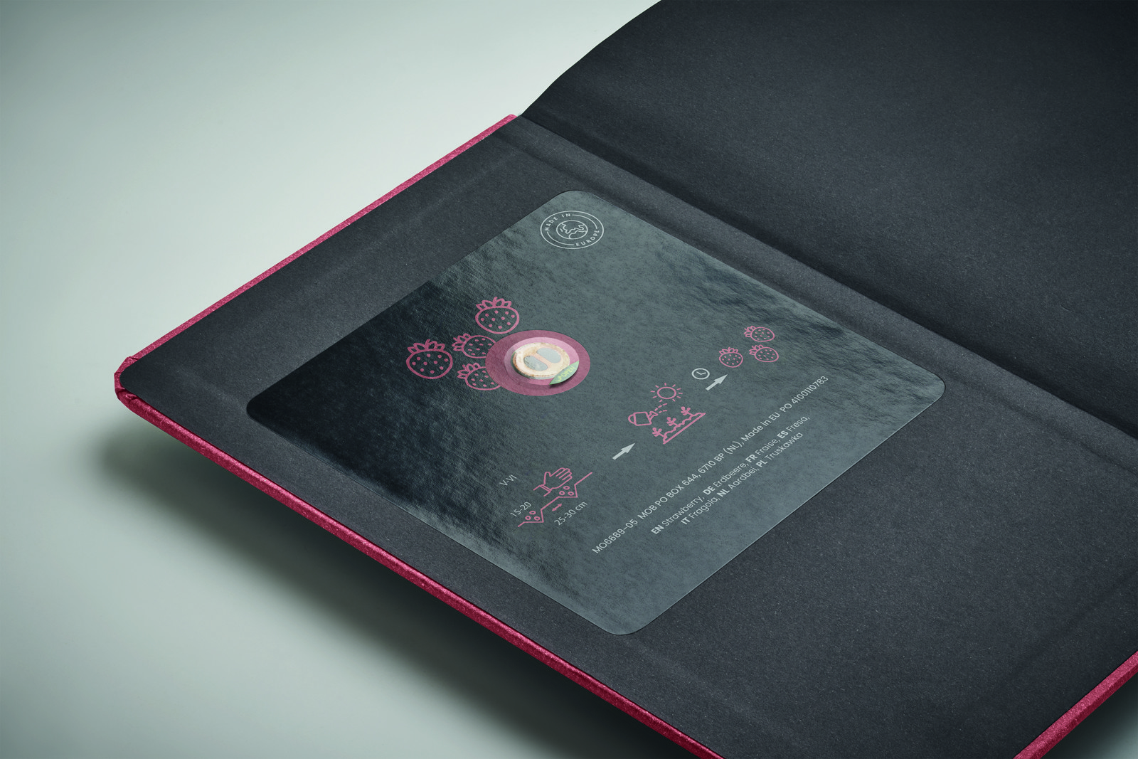 DIN A5 Notizbuch mit nachhaltigem Hard Cover. 92 Blatt (184 Seiten) liniertes recyceltes Papier. Lesebändchen aus Baumwolle. Inklusive unterschiedlichem Saatgut. Hergestellt in der EU. Dieses nachhaltige Notizbuch hat eine geringe Auswirkung auf die Umwelt und ist ein tolles Werbeprodukt. Je nach Coverfarbe liegt ein anderes Saatgut bei, das Sie in Ihrem Garten aussäen können. Der Farbcode gibt die Sorte des Samens an: Heidelbeere (04), Erdbeere (05), Gänseblümchen (13), Apfel (48) und Kiefer (60).