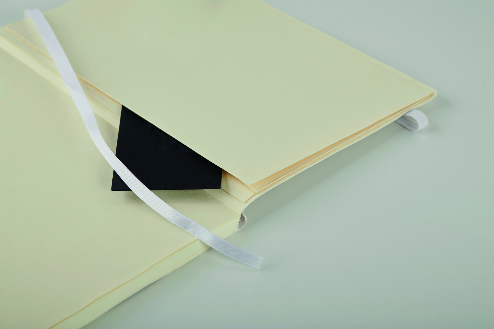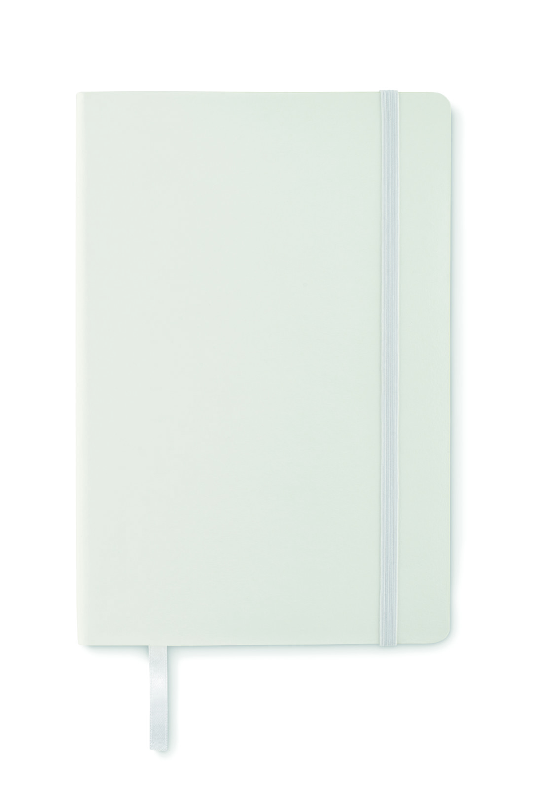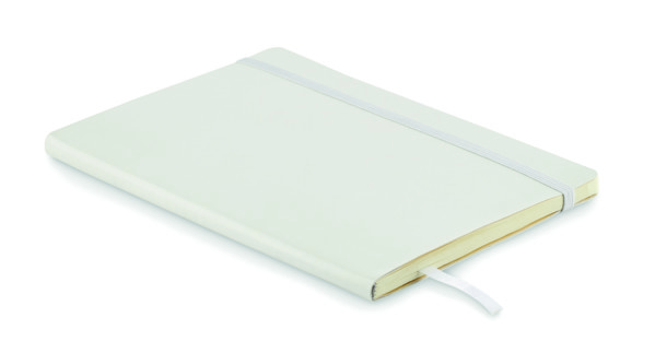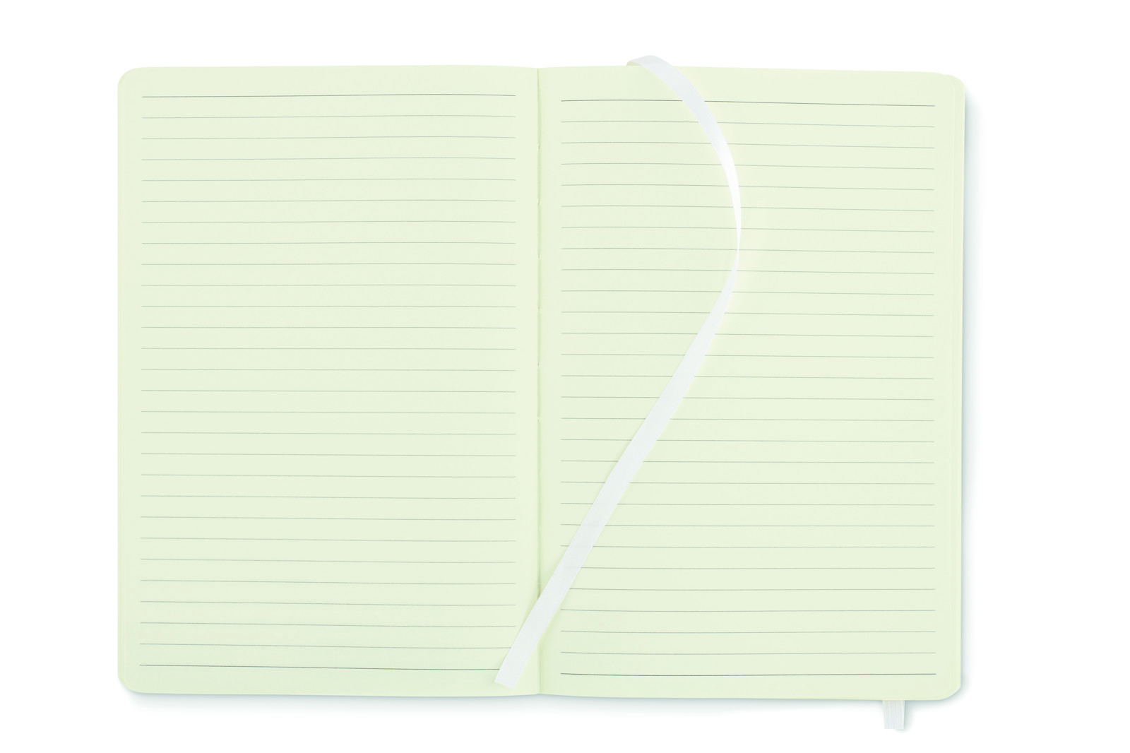 DIN A5 Notizbuch mit gebundenem Soft Cover aus recyceltem PU (81% recyceltes Polyester, 19% PU). 80 Blatt (160 Seiten) recyceltes, liniertes Papier. Rückseitige Innentasche. Elastisches Verschlussband, Lesebändchen. FSC®-certified | FSC MIX CREDIT, P7.1, FSC-C213206
