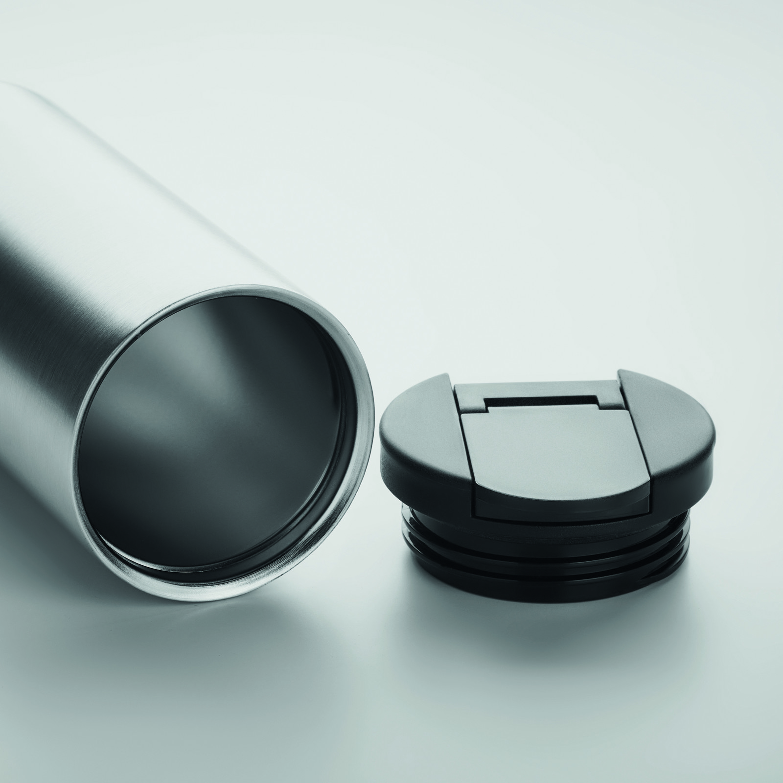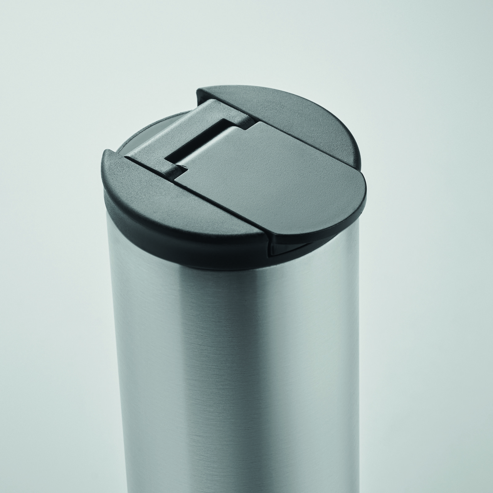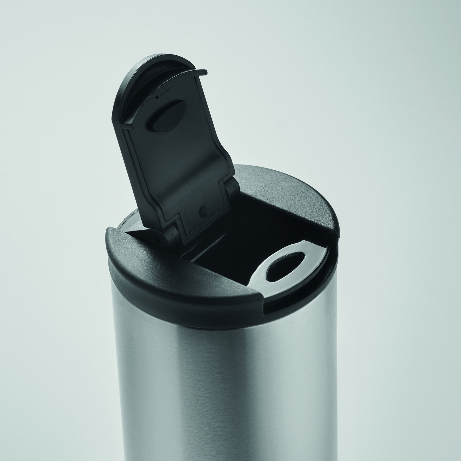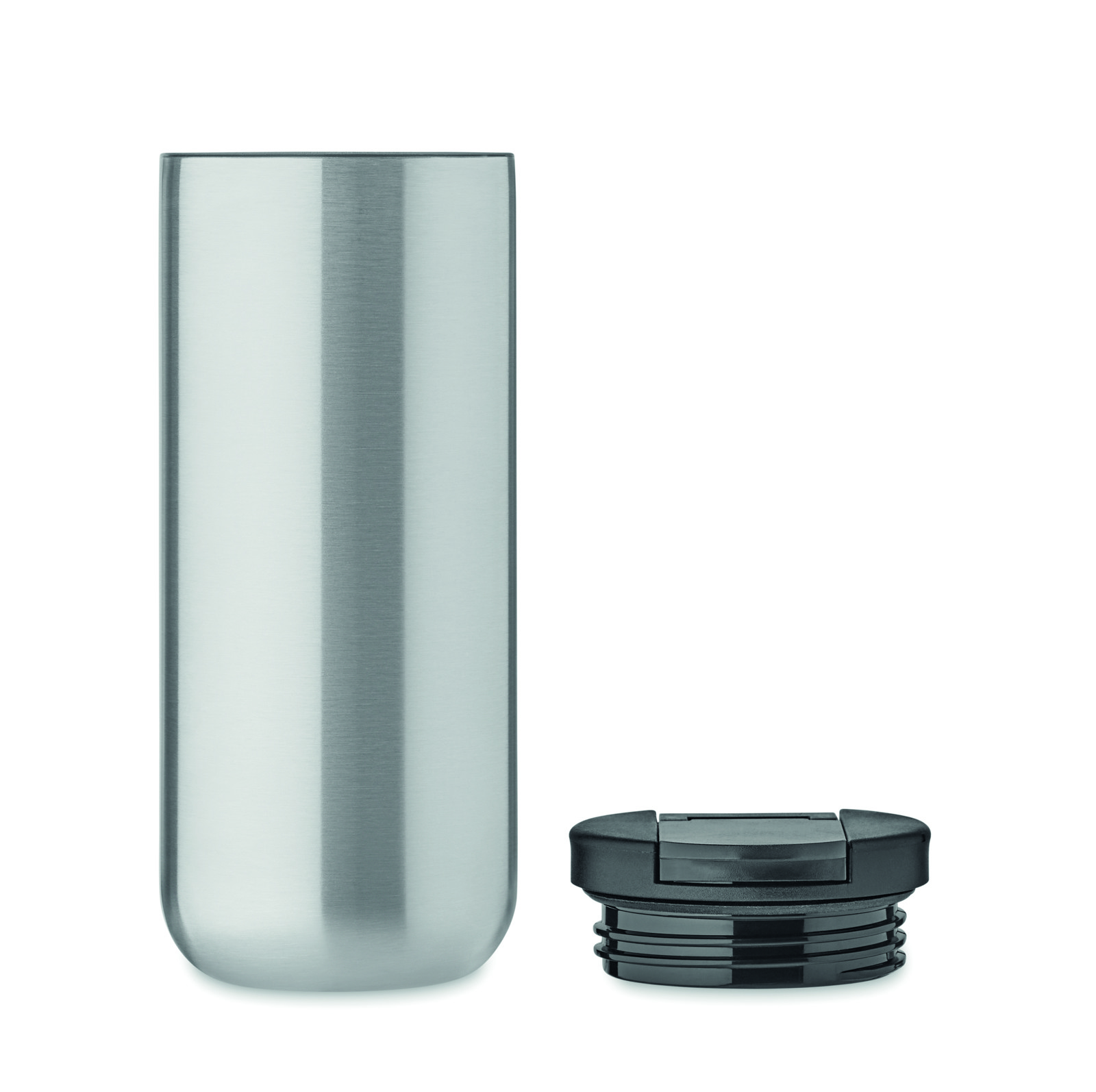 Doppelwandiger Isolierbecher aus Edelstahl. Füllmenge: 330 ml. Auslaufsicher.