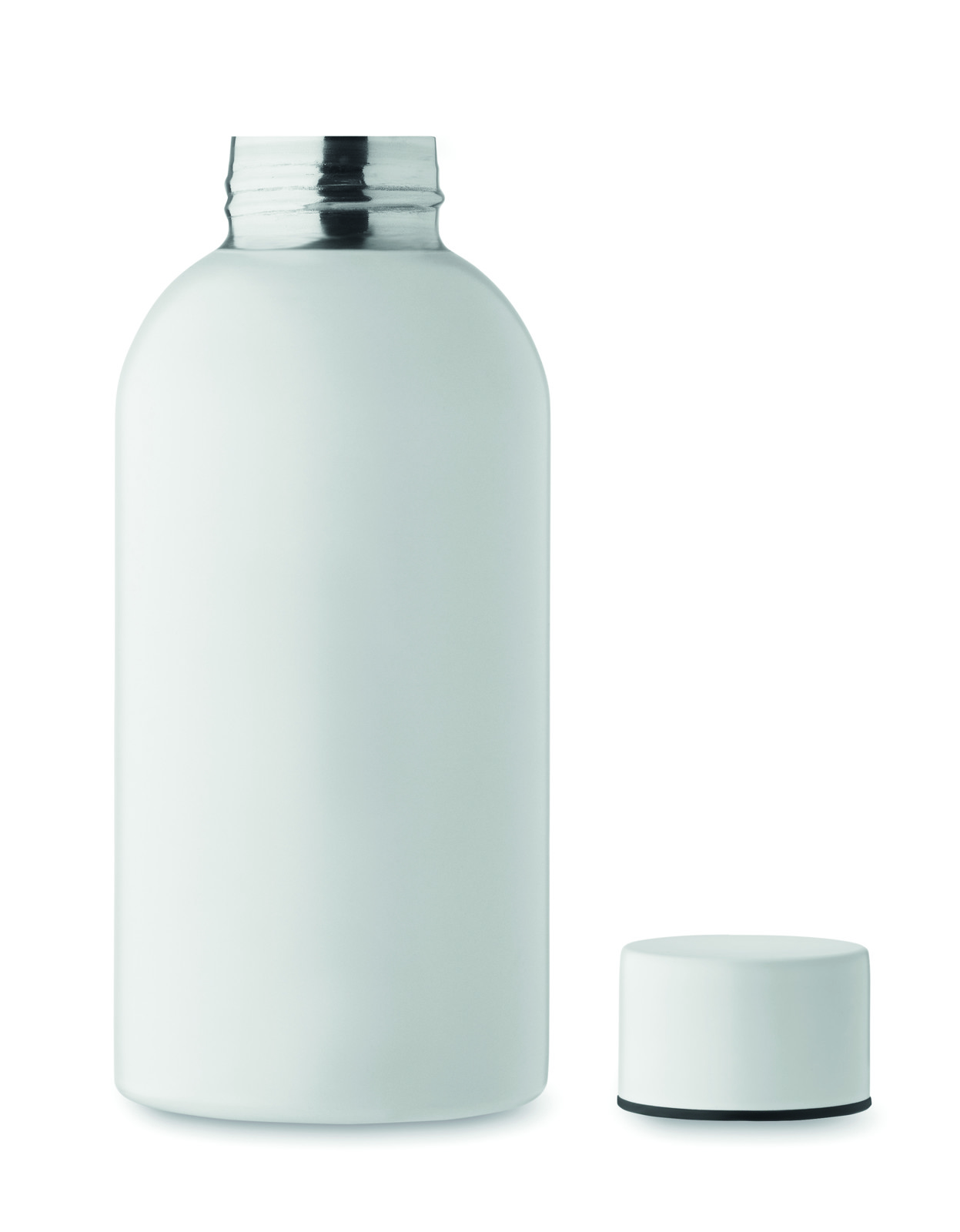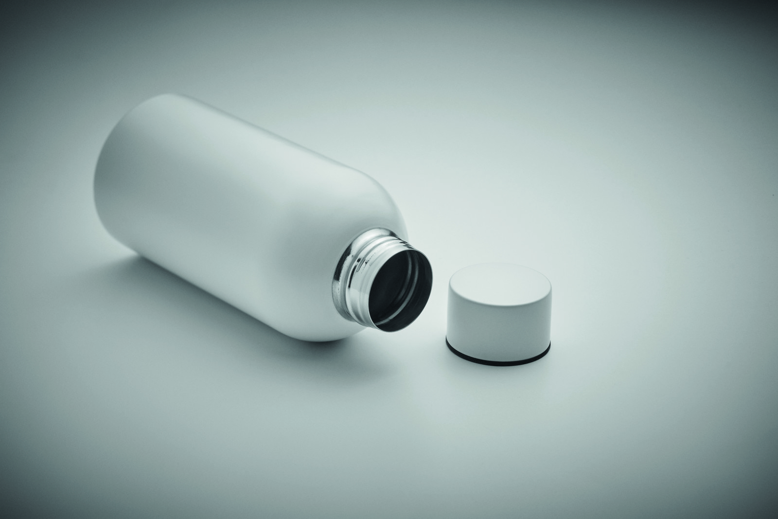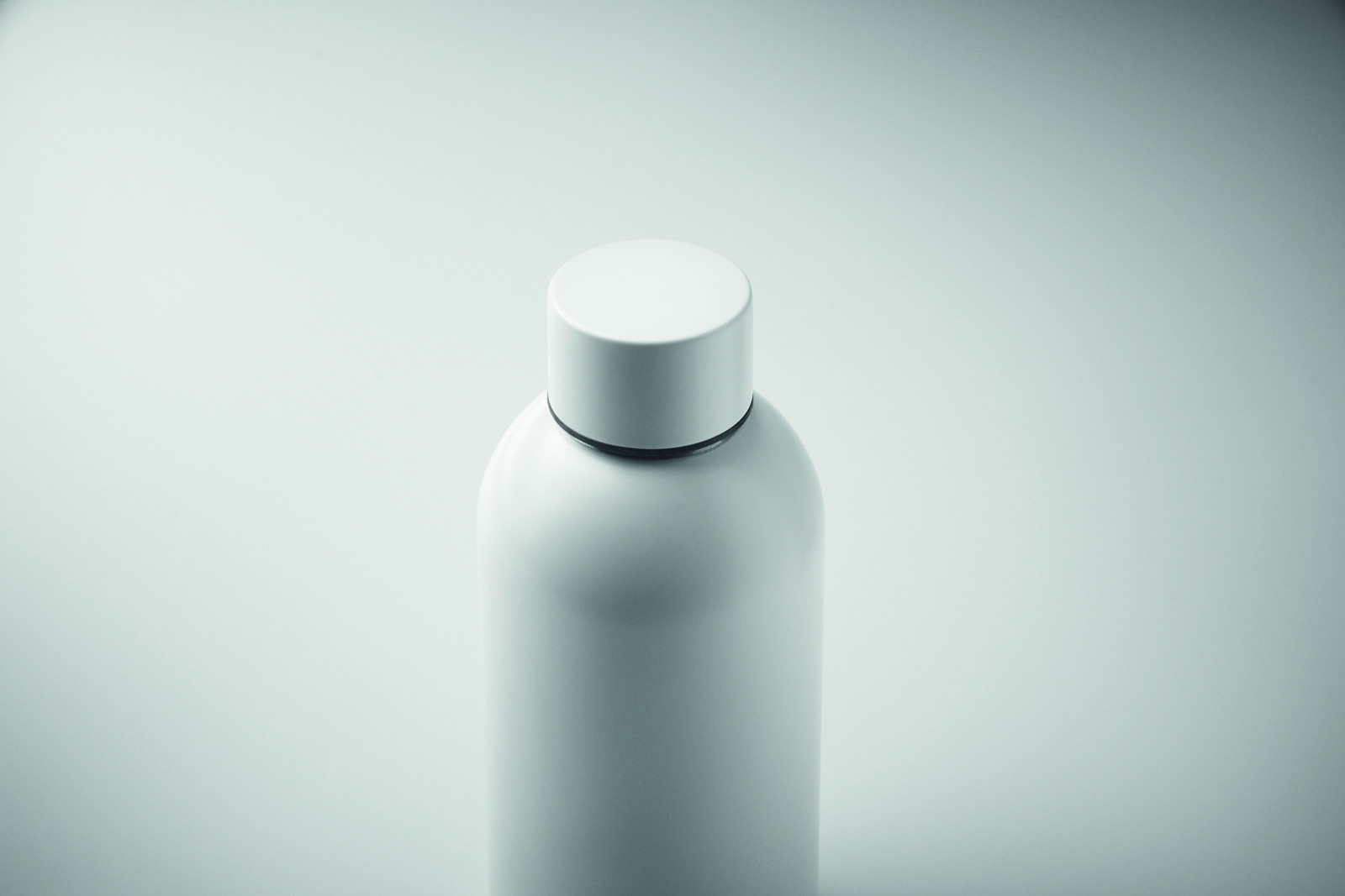 Einwandige Flasche aus recyceltem Edelstahl (90 % recycelter Edelstahl und 10 % Edelstahl). Auslaufsicher. Füllmenge 500 ml. Da der einwandige Flasche die Hitze nach Außen leiten kann, kann der Artikel heiß werden.