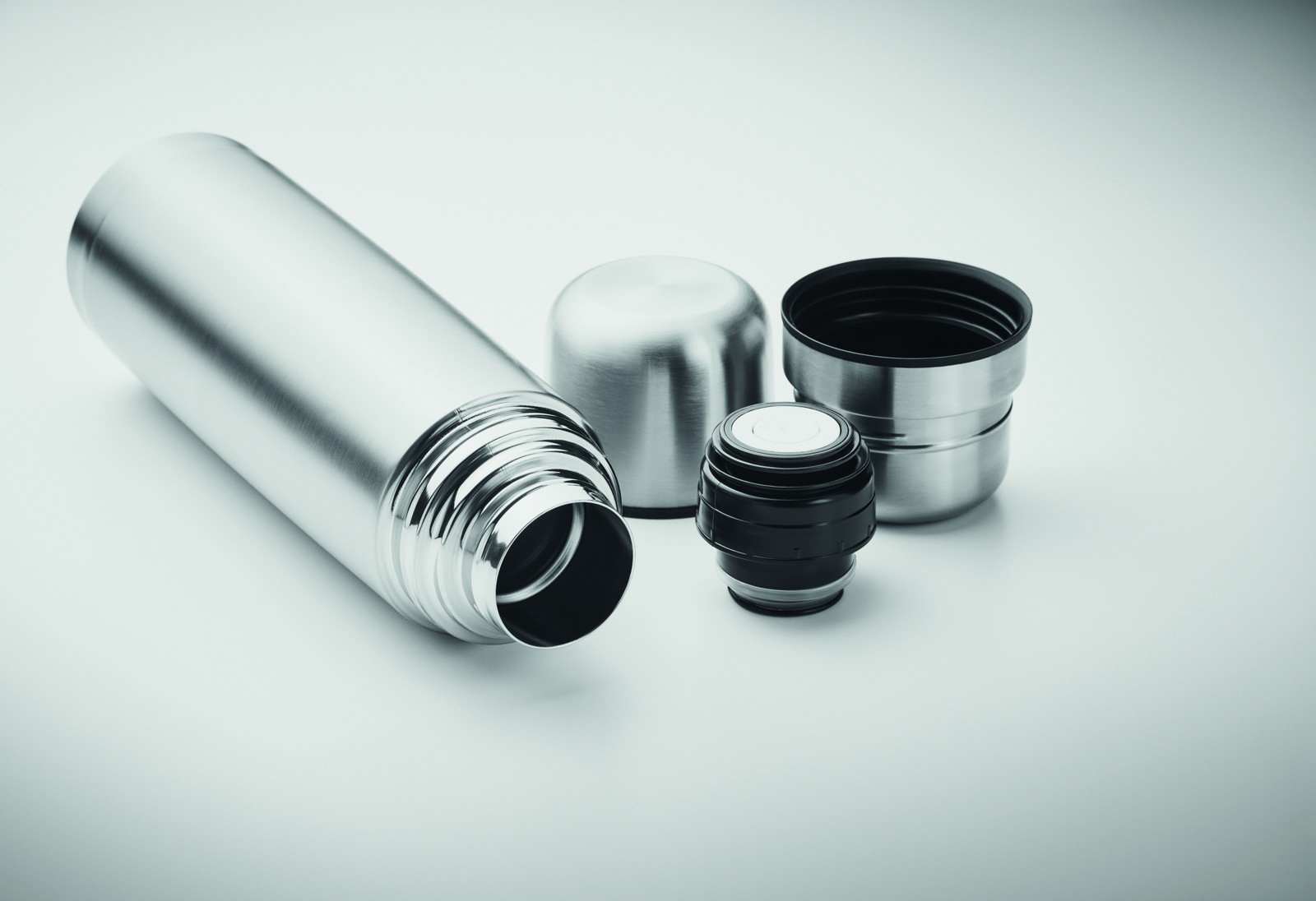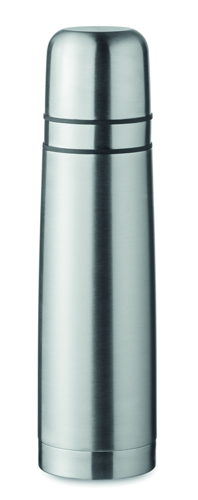 Set bestehend aus doppelwandiger Isolierflasche aus recyceltem Edelstahl (90% recycelter Edelstahl, 10% Edelstahl) sowie 2 Bechern (Innenwand PP) im Deckel. Füllmenge Flasche: 750 ml, Becher: 150ml und 125ml.