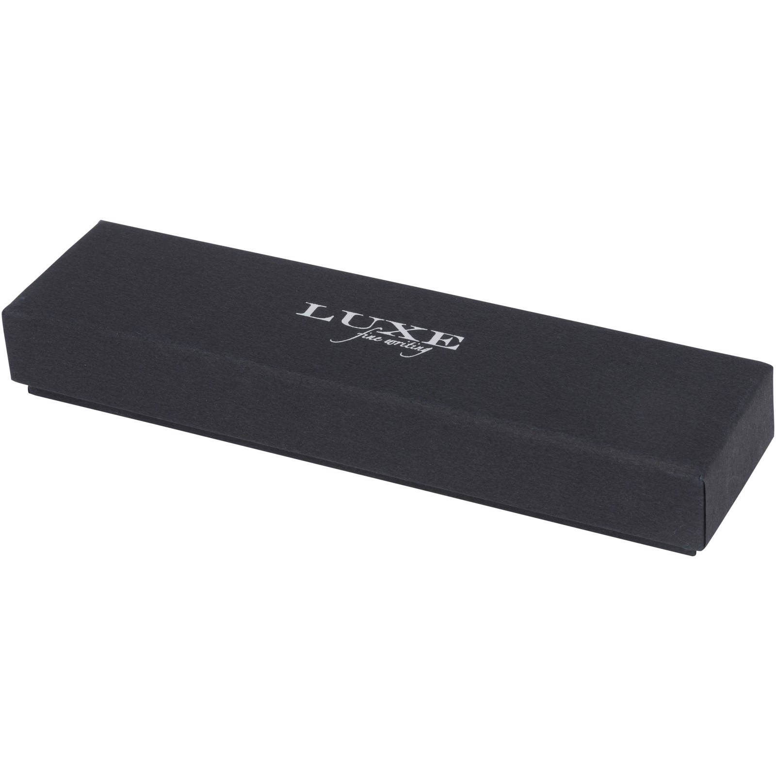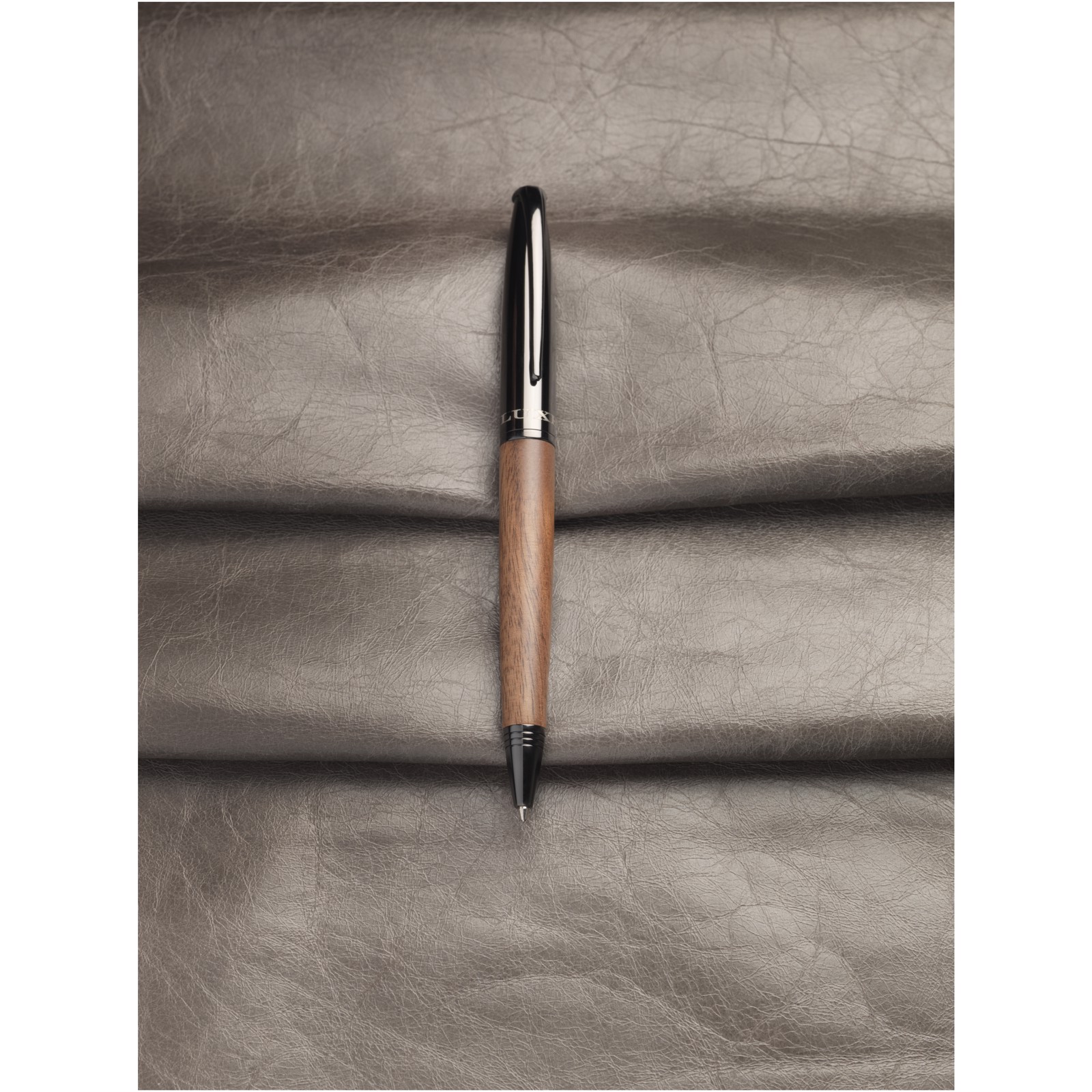 Drehkugelschreiber mit Schaft in Holzoptik, aus verchromtem Messing, geliefert in einer Luxe-Geschenkbox. Kugelschreibergröße: 14,1 x 1,2 cm, Gewicht: 26 g, Schreiblänge: 1500 m.