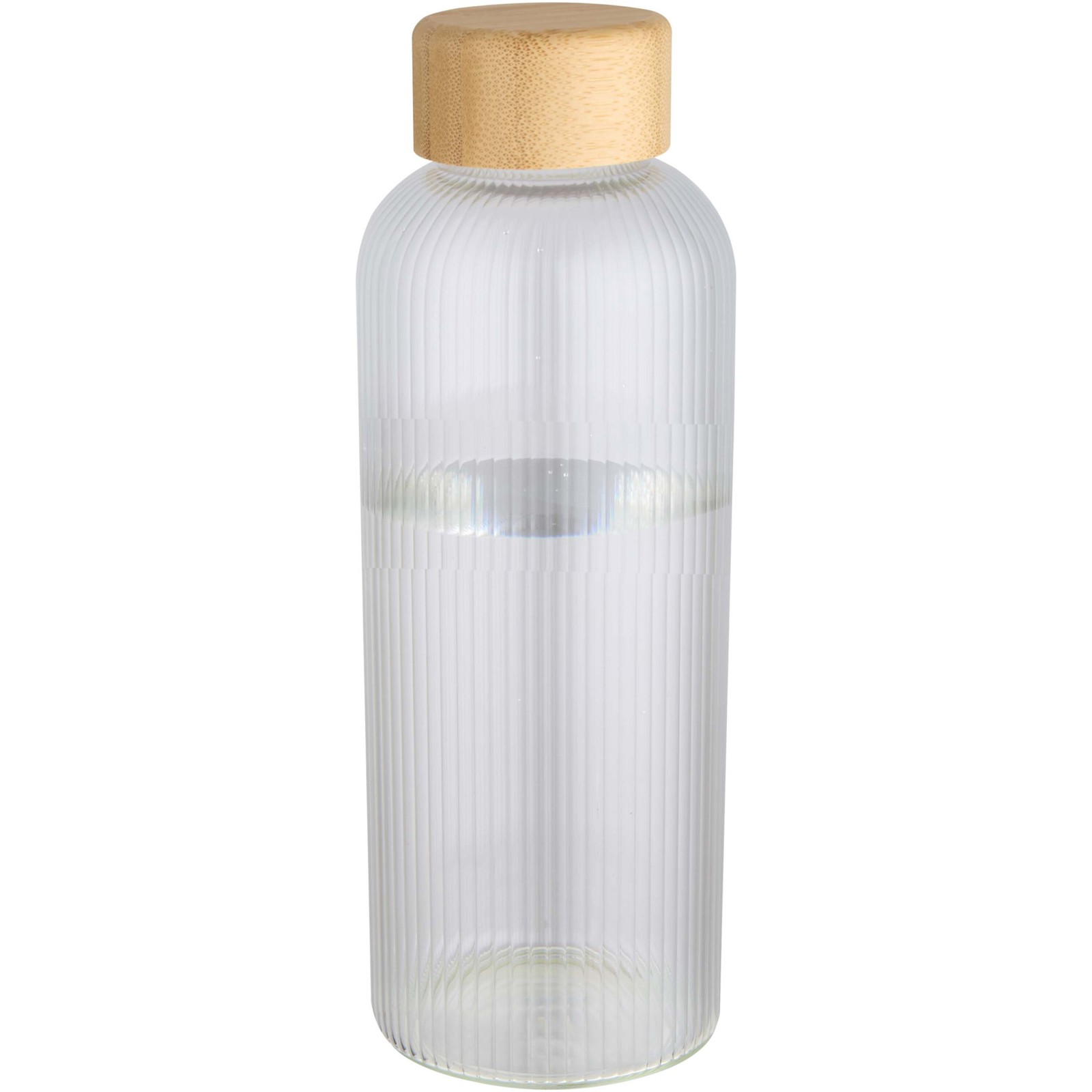 Trinkflasche aus Borosilikatglas mit Bambusdeckel. Die Flasche besitzt ein einzigartiges Rillen-Design im Inneren und eine glatte Außenseite – ideal zur Anbringung eines Logos. Der verwendete Bambus stammt aus nachhaltiger Quelle und wird unter Berücksichtigung ökologischer und sozialer Verantwortung gewonnen. Geliefert in einer Geschenkbox aus Recyclingkarton. Fassungsvermögen: 650 ml.