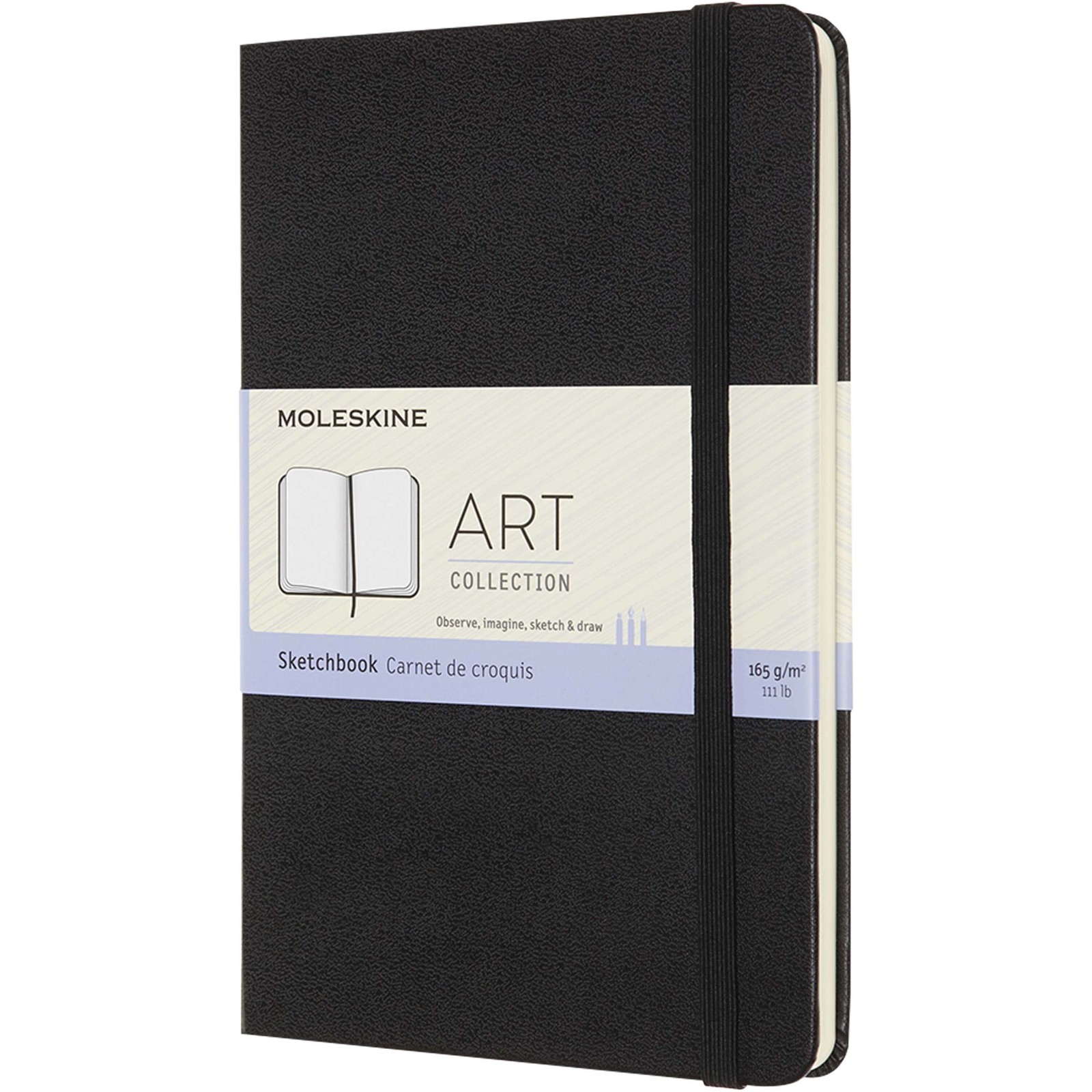 Das Medium Moleskine Art Skizzenbuch ist in Karton gebunden, hat einen abgerundeten Einband und besteht aus hochwertigem, säurefreiem Papier. Das Skizzenbuch ist mit einem Lesezeichen, einem elastischen Verschluss und einer ausziehbaren Innentasche ausgestattet, die die Geschichte von Moleskine festhält.