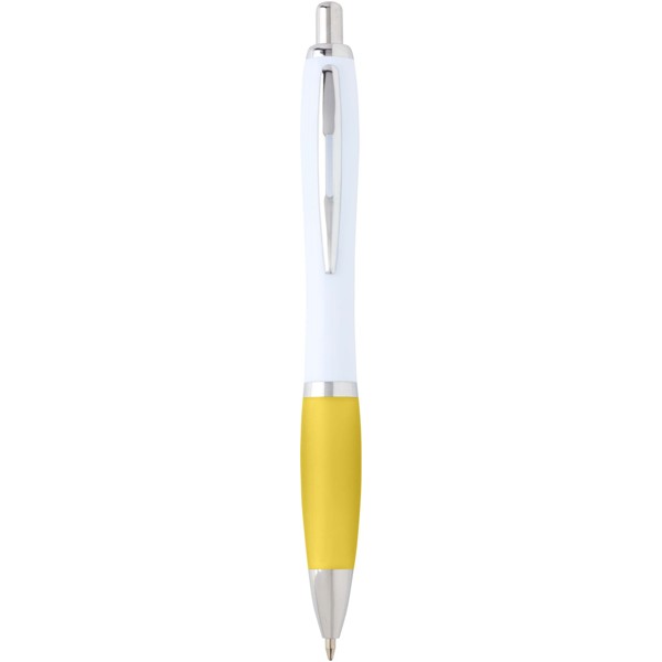 Der Nash Kugelschreiber besitzt ein elegantes, geschwungenes Design und einen weichen Griff. Er besteht aus recyceltem Kunststoff, der hart und stabil ist und dadurch eine lange Lebensdauer hat. Tintenfarbe: Schwarz. Schreiblänge: 1000 Meter. Schreibspitze: 1 mm.