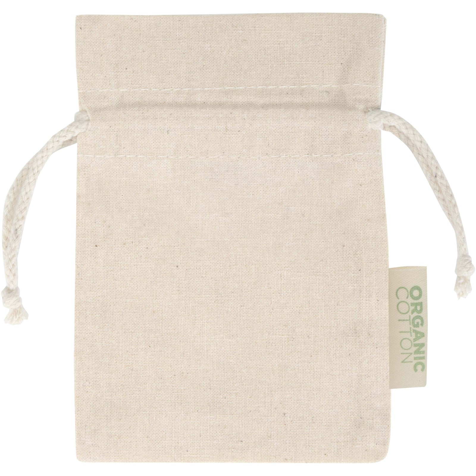 Präsenttasche aus 100 % OCS zertifizierter 140 g/m² Bio Baumwolle mit Kordelzugverschluss aus Baumwolle. Ideal zum Verschenken oder Aufbewahren von Gegenständen. Größe 15 × 10 cm.