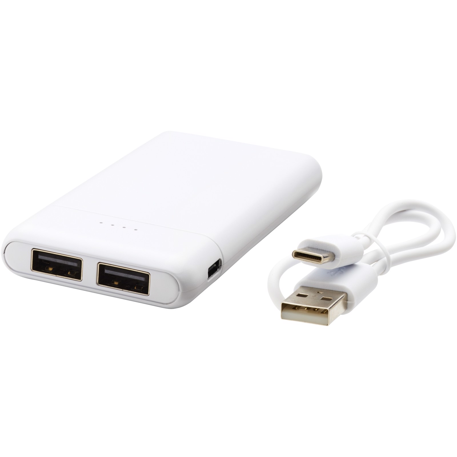 Powerbank im Taschenformat mit einem 5000 mAh Akku mit hoher Dichte. Typ-C-Eingang (5 V/2 A) und dualer USB-A-Ausgang (5 V/2 A). Inklusive PVC-freiem TPE Kunststoff Ladekabel. Lieferung in einer Avenue-Geschenkbox.