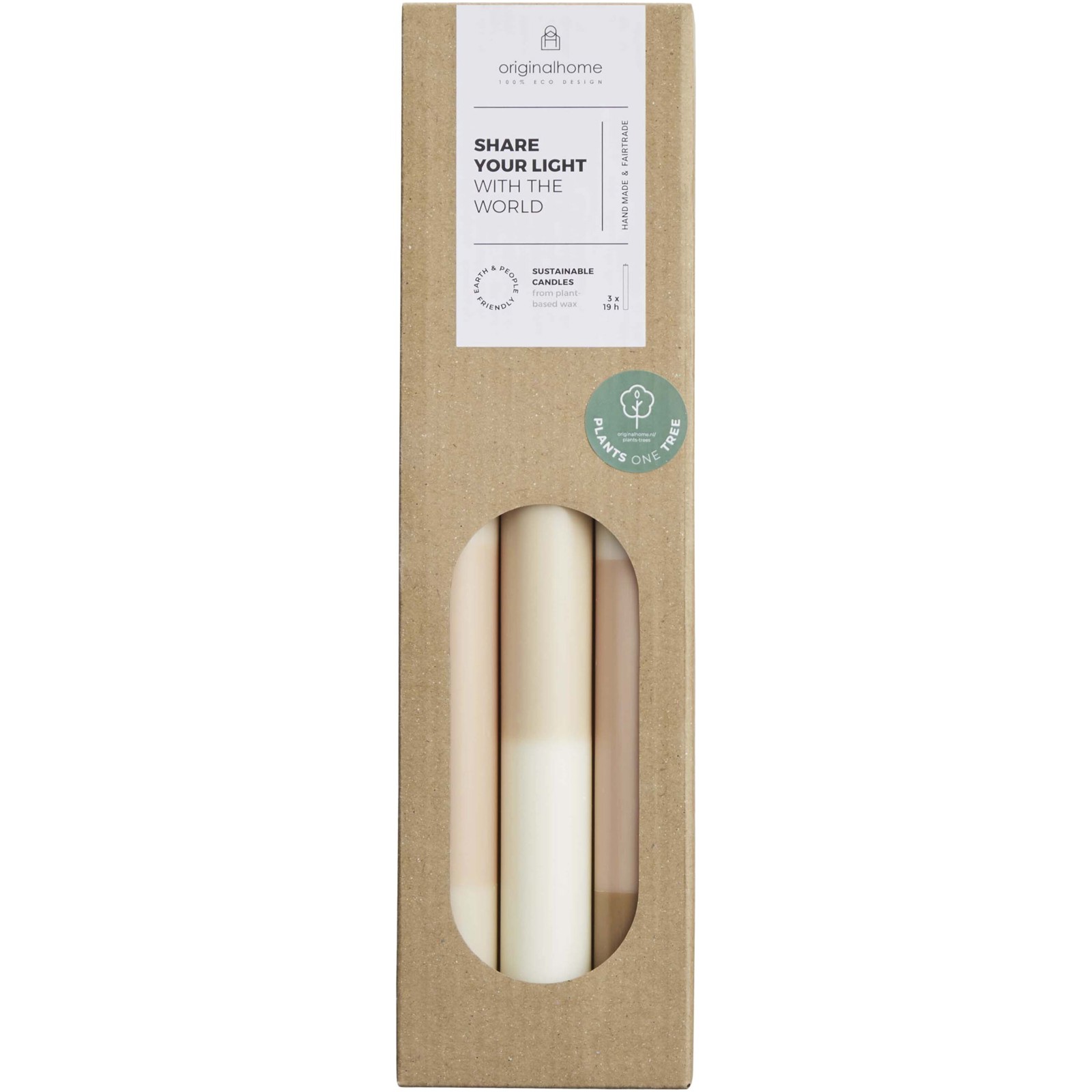 Diese Tafelkerzen im mehrschichtigen Naturdesign bestechen durch eine lebendige Farbpalette und werden aus pflanzenbasiertem, paraffinfreiem Wachs von Hand gefertigt. Sie sind unparfümiert, mit 100 % Baumwoll-Docht, und brennen sauber ab. Mit jedem Kauf wird ein Baum für Bauern in Afrika gepflanzt und ein Fair-Trade-Projekt in Java, Indonesien, unterstützt. Erhältlich in verschiedenen ausdrucksstarken Farben. Set mit drei Kerzen. Brenndauer pro Kerze: 18 bis 20 Stunden.