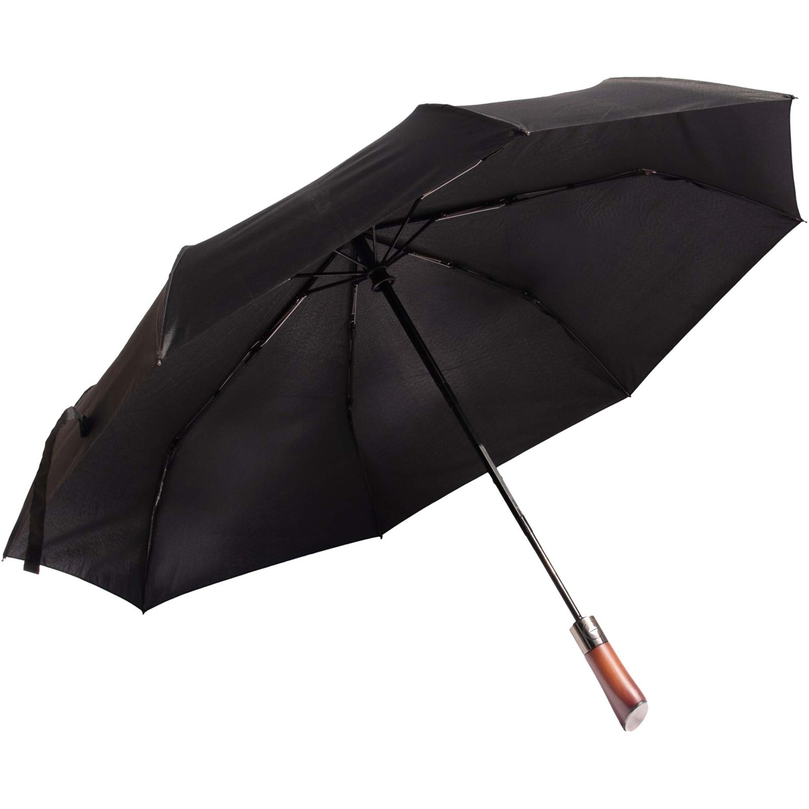 Faltbarer Automatik-Regenschirm, der klassische Handwerkskunst mit moderner Strapazierfähigkeit verbindet. Er ist aus wasserabweisendem RPET-210T-Pongee-Stoff gefertigt und verfügt über einen stabilen Holzschaft sowie flexible Fiberglasstreben, die die Windbeständigkeit erhöhen. Ein integrierter Druckknopf ermöglicht schnelles, einfaches Öffnen und Schließen. Verpackt in einer wasserfesten EVA-Kapselhülle, inklusive passender Schutzhülle für den Regenschirm. Die Metallplatte des Schließknopfes kann individuell gestaltet werden. Die Lieferung erfolgt in einer zylindrischen Geschenkbox aus Recyclingpapier.