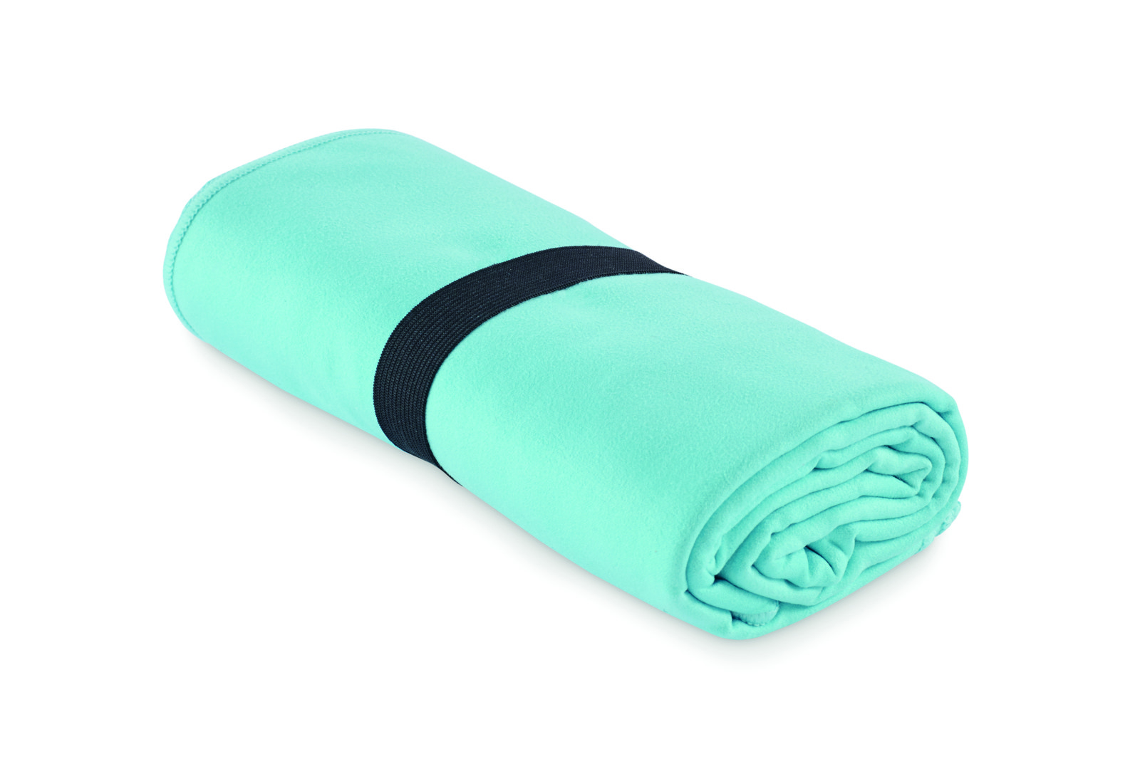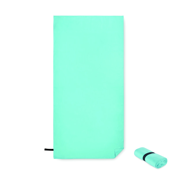 Sport- oder Strandtuch aus samtiger Mikrofaser 200 g/m². Gurt mit Druckknopf.