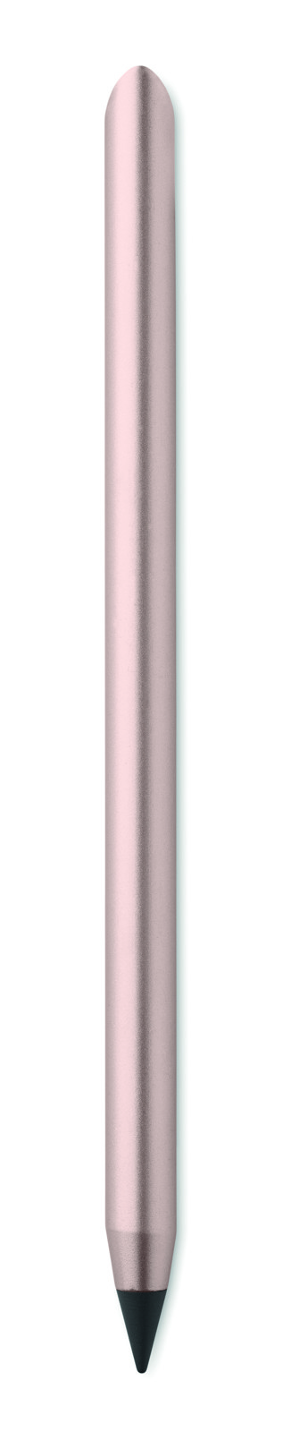 Langlebiger Stift aus recyceltem Aluminium ohne Tinte. Der Stift schreibt mittels Grafitspitze, die durch eine Kunststoffkappe geschützt ist.