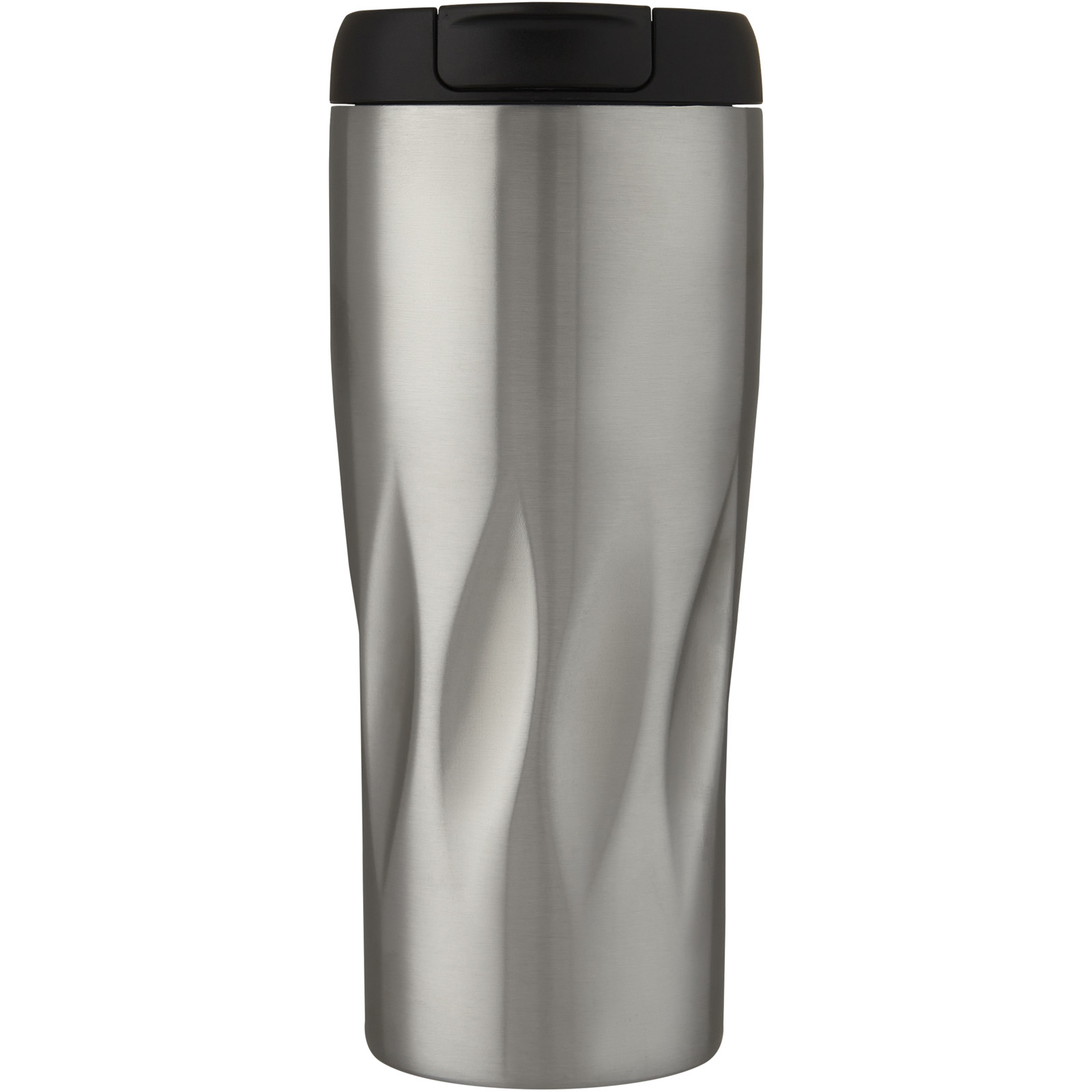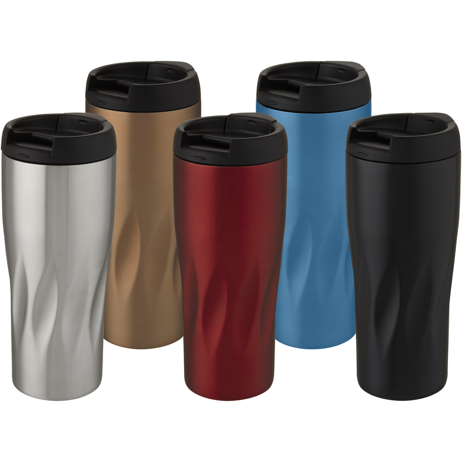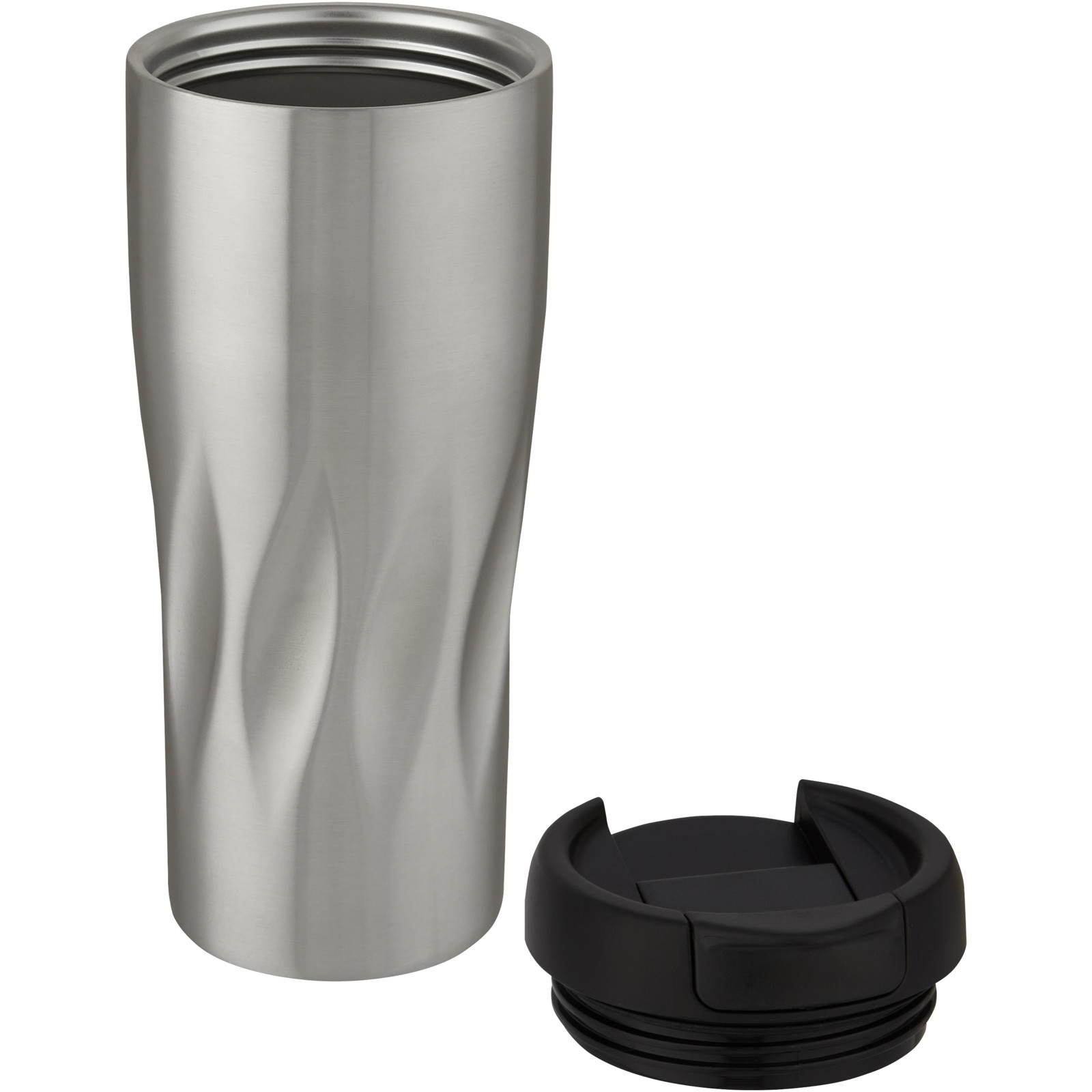 Doppelwandiger, vakuumisolierter Kupferbecher mit schraubbarem, auslaufsicherem Deckel und gewelltem, geometrischem Design. Der isolierte 18/8 Edelstahl hält Getränke über mehrere Stunden heiß oder kalt. Frei von BPA und nach deutschem Lebensmittelsicherheitsgesetz (LFGB) geprüft und zugelassen. Nach REACH Verordnung auf Phtalate geprüft. Das Fassungsvermögen beträgt 450 ml. Handwäsche empfohlen. Verpackt in einer Geschenkbox aus Recyclingkarton.