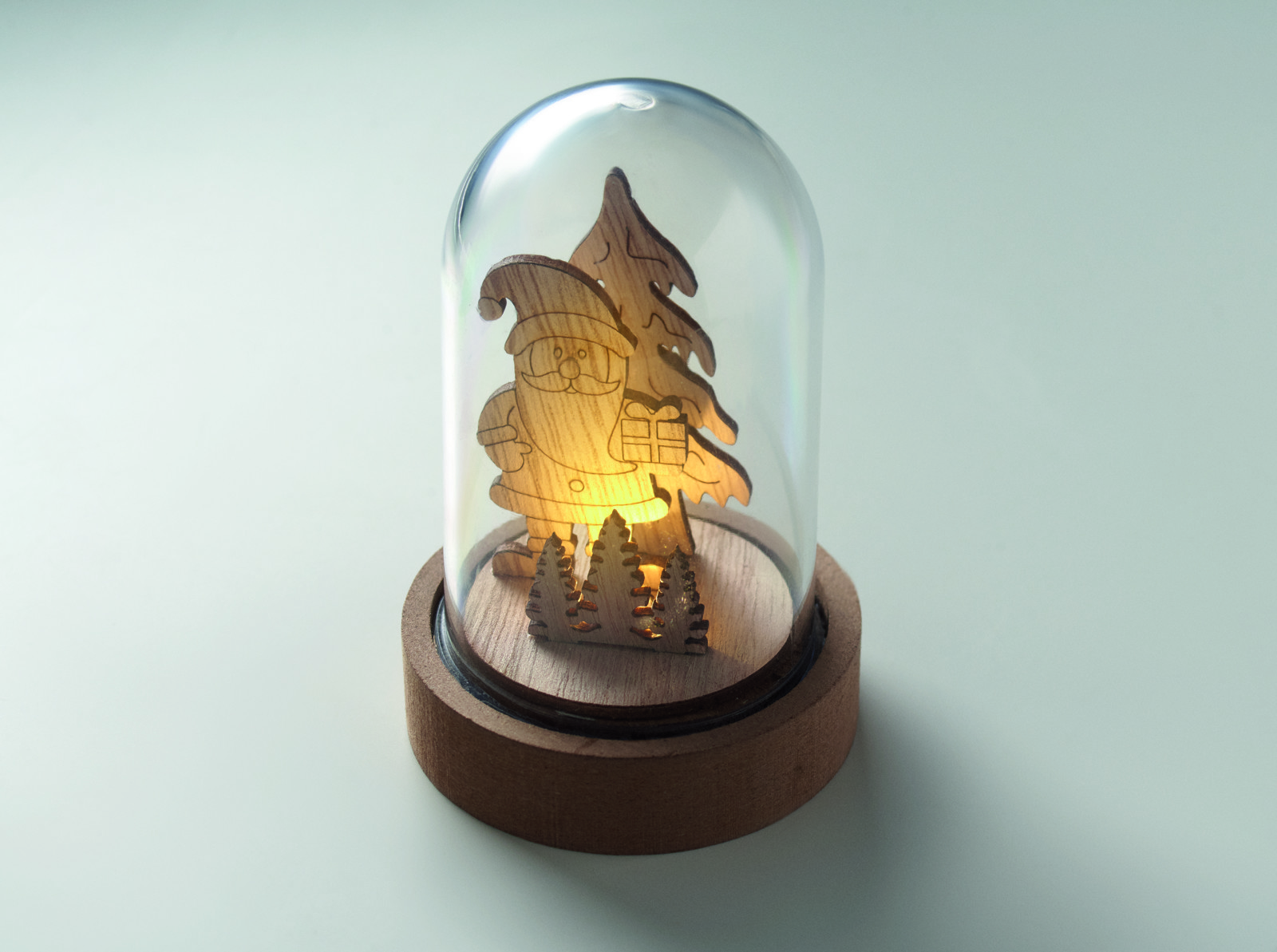 Weihnachtsdekoration mit 1 LED-Licht. Gehäuse aus MDF und PET. Inkl. 3 Knopfzellbatterien.