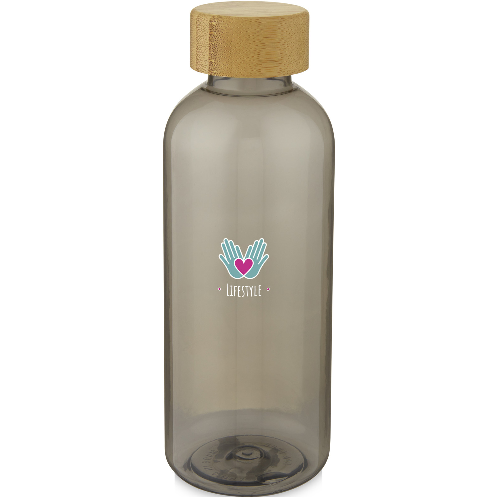 Wiederverwendbare Wasserflasche aus recyceltem Kunststoff mit einem eleganten Bambusdeckel. Die einwandige Flasche ist BPA-frei und wurde nach dem deutschen Lebensmittelrecht (LFGB) geprüft und zugelassen. Auf Phthalate geprüft und zugelassen gemäß den REACH-Vorschriften. Das Bambusholz stammt aus nachhaltigen, umweltfreundlichen und sozial verantwortlichen Quellen. Das Fassungsvermögen beträgt 950 ml. Handwäsche empfohlen. Verpackt in einer Geschenkbox aus Recyclingkarton.