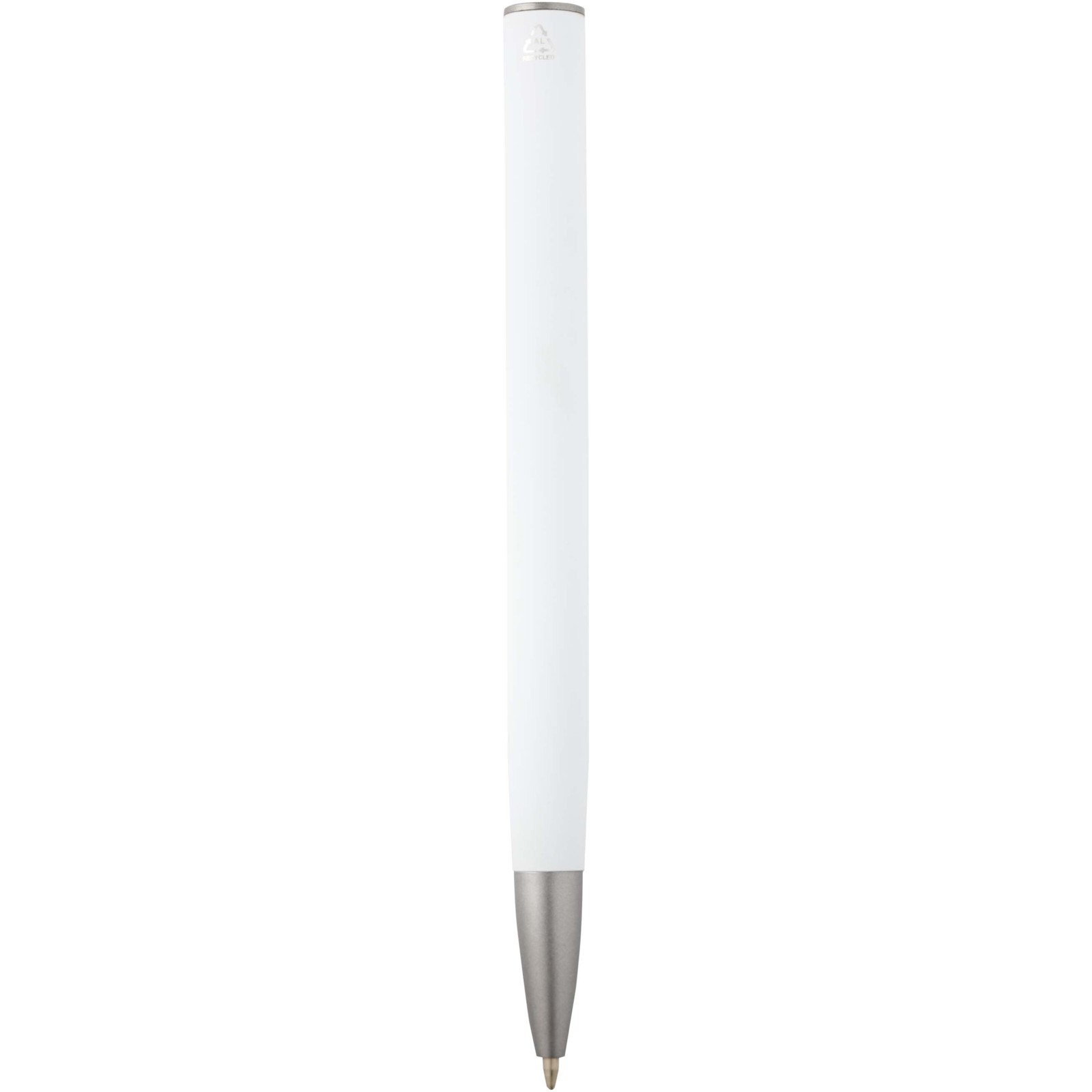 Kugelschreiber mit Schaft aus recyceltem Aluminium und silberfarbenem Clip aus ABS Kunststoff. Recyceltes Aluminium reduziert die Menge an Deponiemüll, schont die natürlichen Ressourcen und reduziert die Treibhausgasemissionen. Tintenfarbe: Schwarz. Schreiblänge: 800 Meter. Schreibspitze: 1 mm.